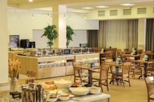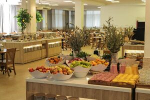 Для детей в возрасте до 4 лет (включительно) предусмотрено бесплатное проживание и питание. Для детей от 5 до 14 лет (включительно) приобретается путевка, включающая проживание с лечением или без, а также трехразовое питание по системе шведский стол.