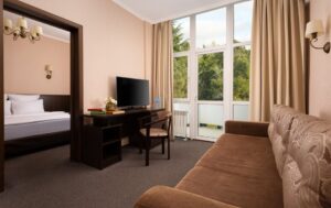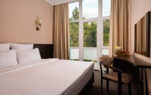 Проживание в номере выбранной категории, трёхразовое питание по системе «шведский стол», первичный приём у врача-терапевта (или педиатра) и санаторно-курортные процедуры, назначенные врачом.