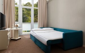 Для бронирования оздоровительной путевки (без лечебных процедур) проживание доступно от одного дня. Путёвку с лечением (санаторно-курортную) можно забронировать на срок от семи дней.